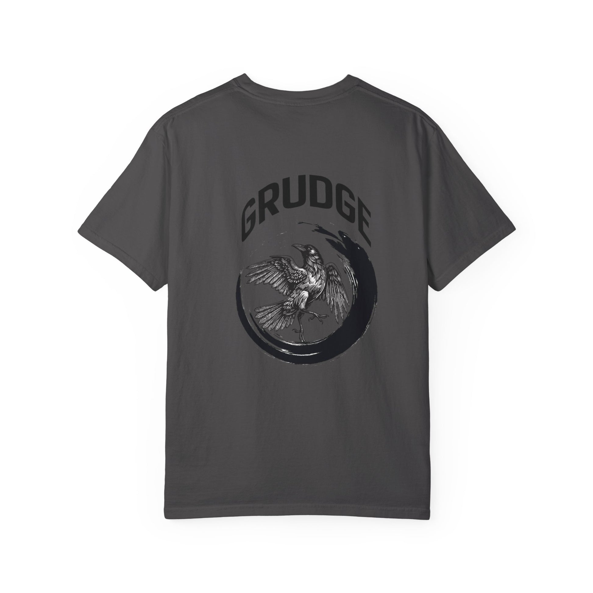 A comfortable unisex garment-dyed T-shirt featuring a design inspired by traits like how the crow can hold a grudge for years. This T-shirt gives off a mysterious and edgy vibe, perfect for those who appreciate dark and brooding aesthetics. It's a great addition to any casual wardrobe and can be worn by anyone looking to make a statement.